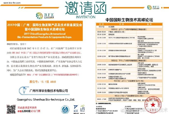 廣州深華誠邀您參加2017中國國際生物技術(shù)高峰論壇