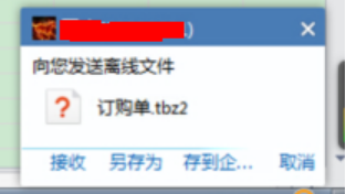 此類(lèi)文件一般命名為客戶(hù)資料、對(duì)賬單、采購(gòu)單等文件顯示的圖標(biāo)為“?”帶有一個(gè)問(wèn)號(hào)。如果看到此類(lèi)文件直接關(guān)閉會(huì)話(huà)窗口,拒絕接受,如下圖: